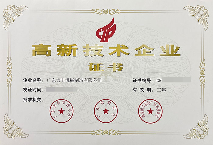 九游会机械制造有限公司于2016年成为国家高新技术企业